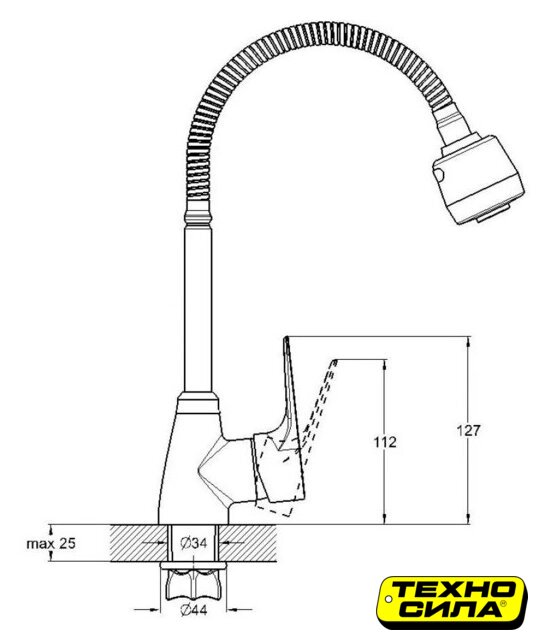 однорычажный смеситель для кухни, монтаж на раковину или столешницу