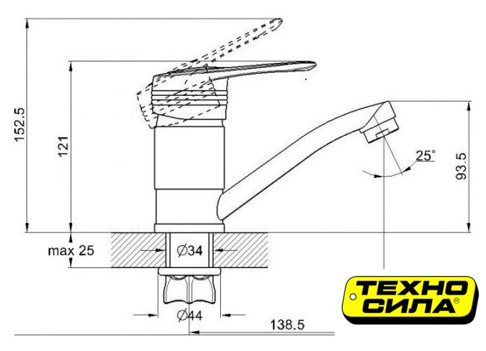 однорычажный смеситель для кухни, монтаж на раковину или столешницу