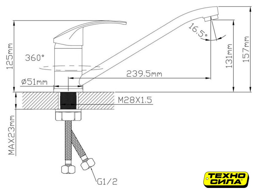 | Длина (вылет) излива | 239.5 — 239.5 мм |