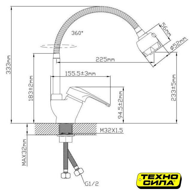 однорычажный смеситель для кухни, монтаж на раковину или столешницу