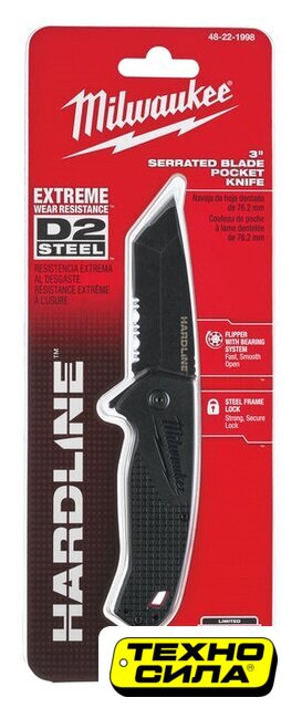 длина: 76.2 мм, сталь: D2, рукоять: пластик/металл, черный цвет, 1 инструмент, с фиксатором