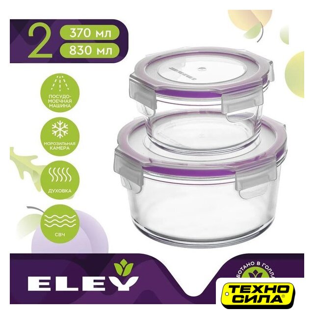 Размеры контейнеров в наборе | Ширина/диаметр: 15.2 см (12 см)Высота: 8.1 см (6.6 см)Объем: 0.83 л (0.37 л) |