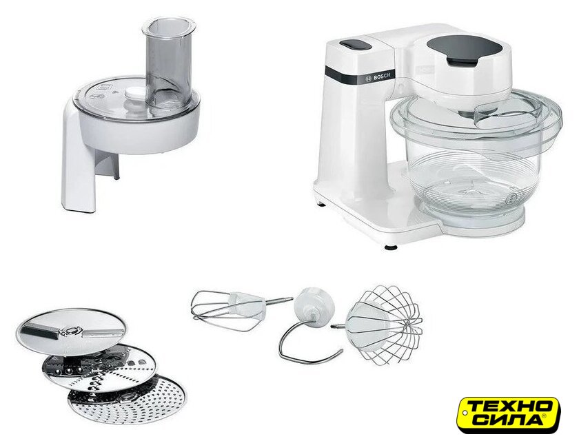 1300 Вт, планетарное смешивание, объем чаши: 4.5 л, терки, мясорубка, блендер