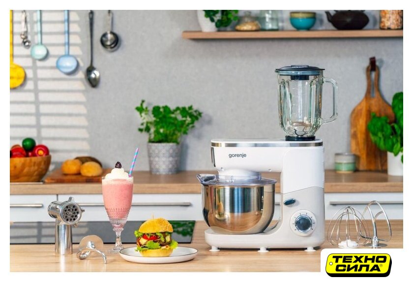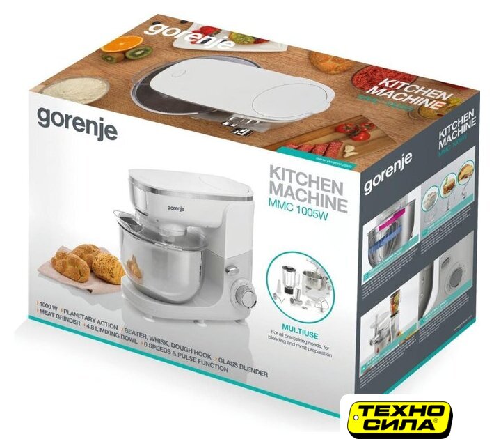 1000 Вт, планетарное смешивание, объем чаши: 6 л, мясорубка, блендер