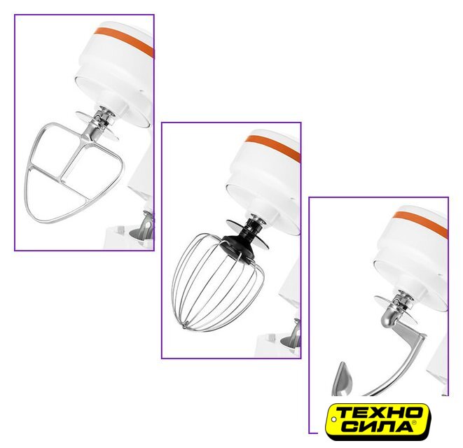 Полная комплектация | - моторный блок;- чаша миксера;- крышка чаши миксера;- венчик для сбивания;- насадка для смешивания;- крюк;- руководство по эксплуатации. |