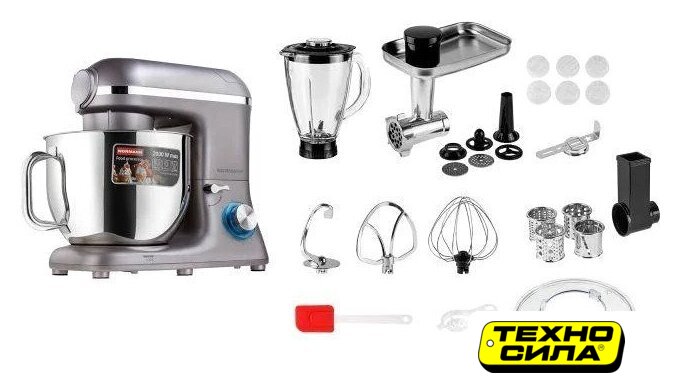 2000 Вт, планетарное смешивание, объем чаши: 7 л, мясорубка, блендер