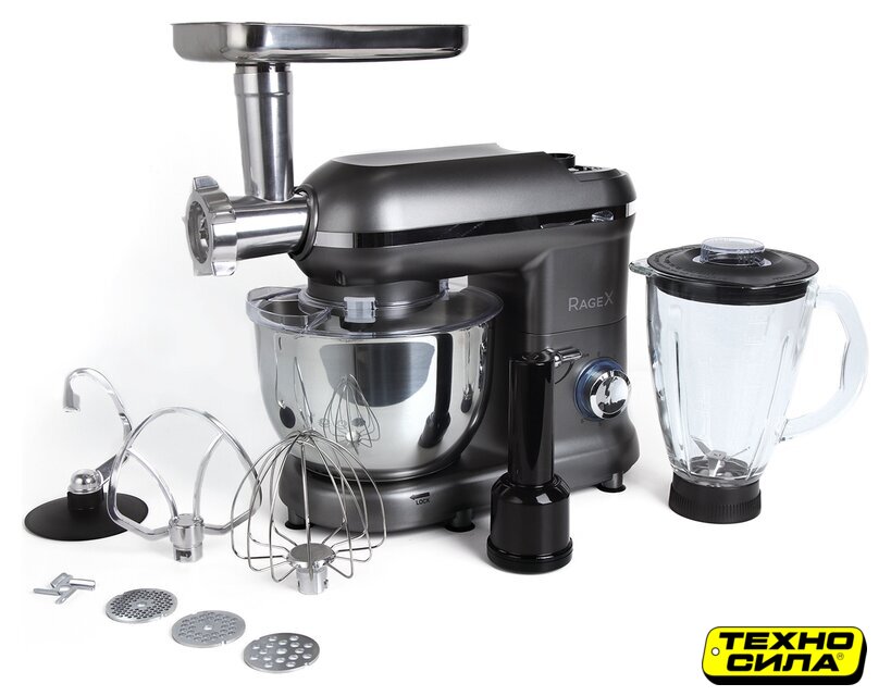 1500 Вт, планетарное смешивание, объем чаши: 5.2 л, терки, мясорубка