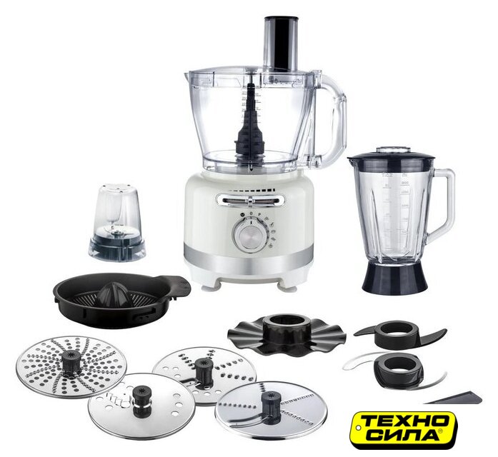 1000 Вт, объем чаши: 1.2 л, терки, измельчитель, соковыжималка, блендер