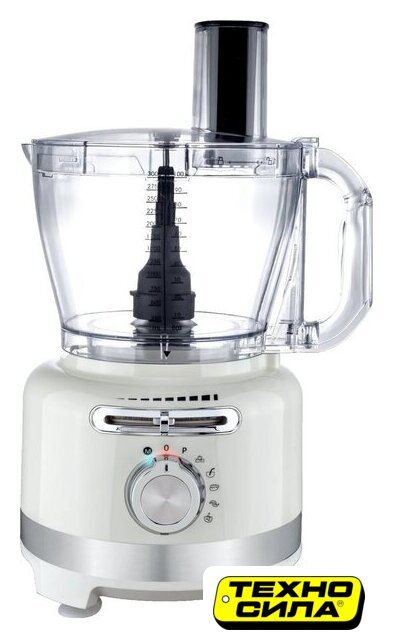 Полная комплектация | • Моторное основание;• Чаша измельчителя;• Толкатель;• Длинный вал;• Короткий вал;• Блендер с крышкой;• Диск эмульгатор;• Нож для измельчения;• Нож для теста;• Лопатка;• Диск – 4 шт (лезвие для нарезки картофеля фри; двухстороннее лезвие для крупной шинковки – диск-жюльен; двухстороннее лезвие для мелкой шинковки – диск-жюльен; терка для драников);• Соковыжималка;• Кофемолка;• Руководство пользователя |