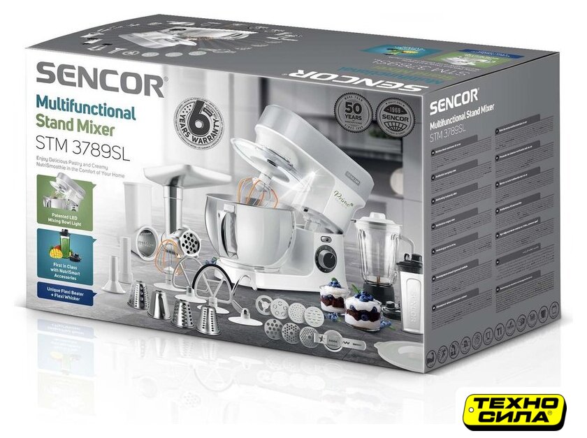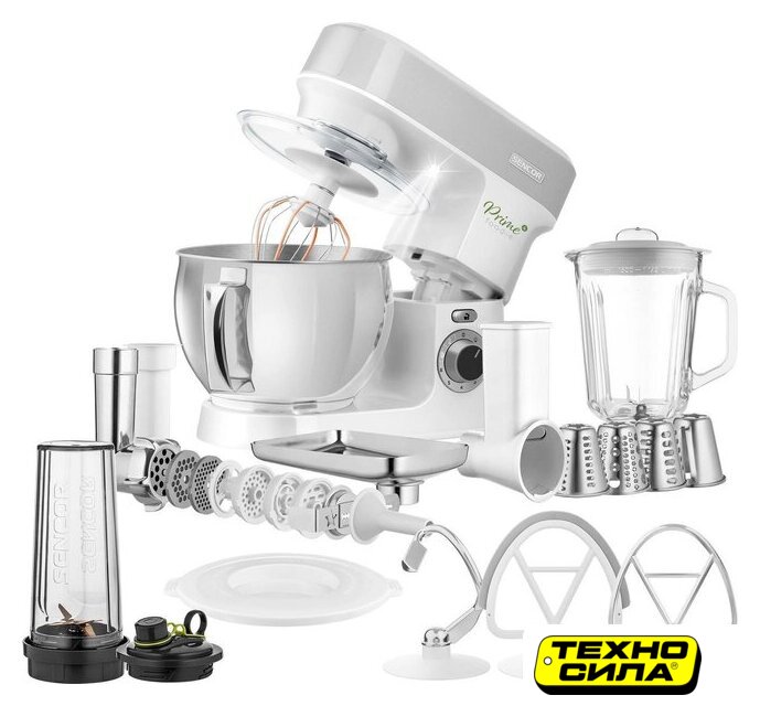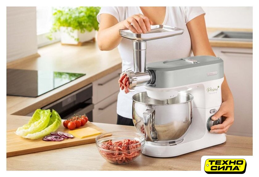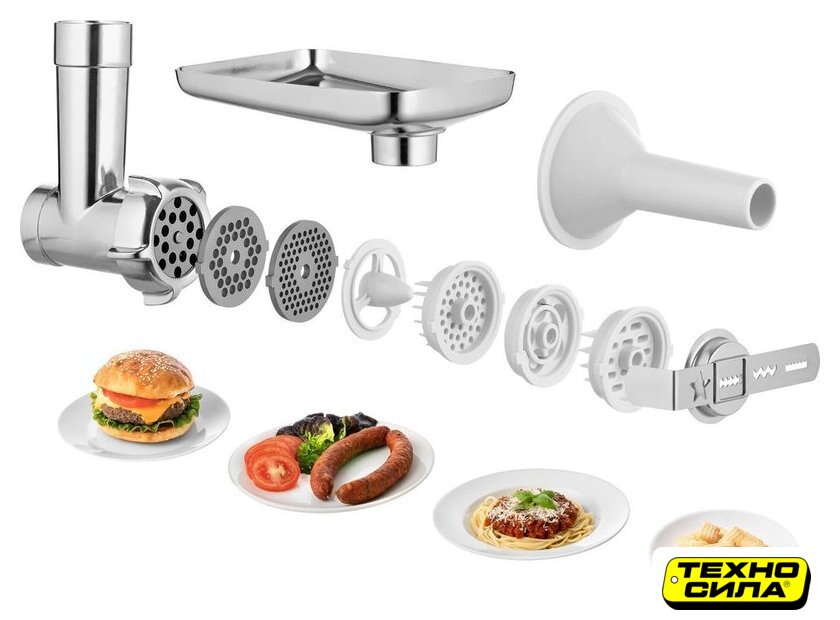 Полная комплектация | Стеклянная чаша блендера 1,5лЧаша миксера 5лДве насадки для смешиванияНасадка для тестаВенчикМясорубка с насадками для регулировки степени измельчения, набивки колбас, изготовления пасты и насадкой-шаблоном для формовки печеньяТолкательОвощерезка с 4 терками (мелкая терка, крупная терка, измельчение, нарезка ломтиками)Миксер для смузи 0,6л с крышкой для использования в качестве дорожной бутылки |