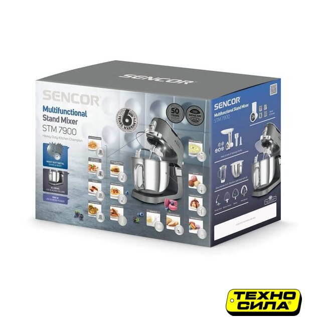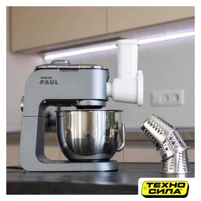 1500 Вт, планетарное смешивание, объем чаши: 6 л, терки, мясорубка, блендер