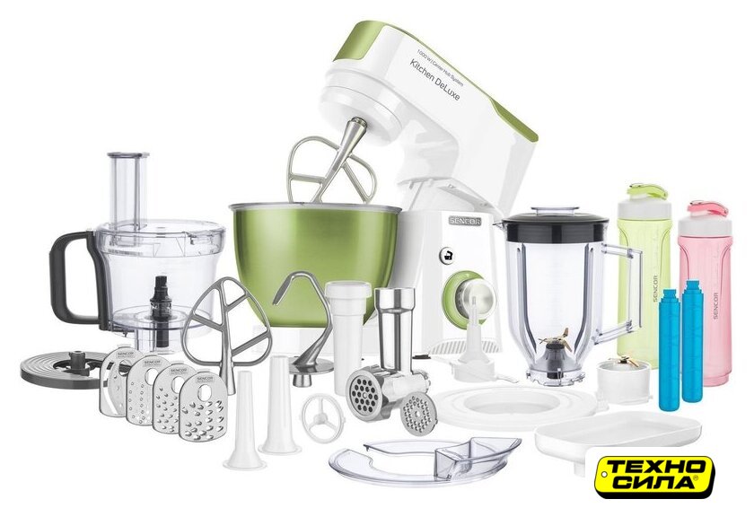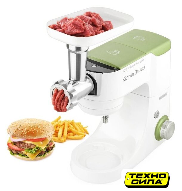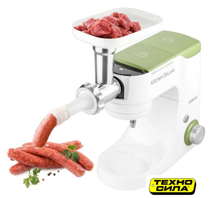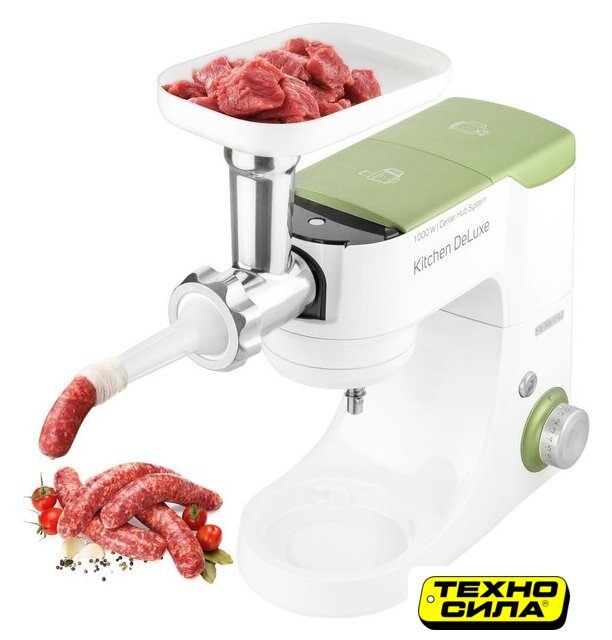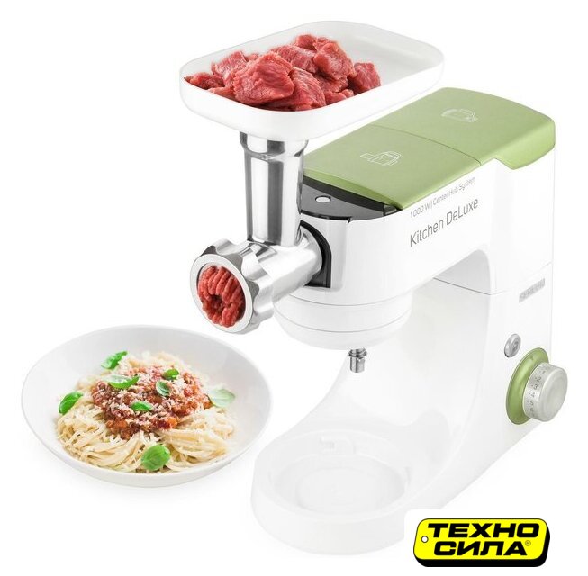 Полная комплектация | крюк для замеса, взбивающий венчик в форме буквы А, сферический венчик для взбивания. Насадка для заполнения копченостей с 2 диаметрами. 2 бутылки из материала Тритан с 2 охлаждающими элементами (ICE STICK). Настольный миксер с титановыми лезвиями объёмом 1,25 л. Многофункциональный кухонный комбайн объемом 1,25 л, с 4 насадками и измельчителем. Мясорубка для грубого и мелкого помола с насадкой для заполнения копченостей с 2 диаметрами. Чаша для замеса объёмом 4,5 литра из нержавеющей стали и измерительной шкалой |