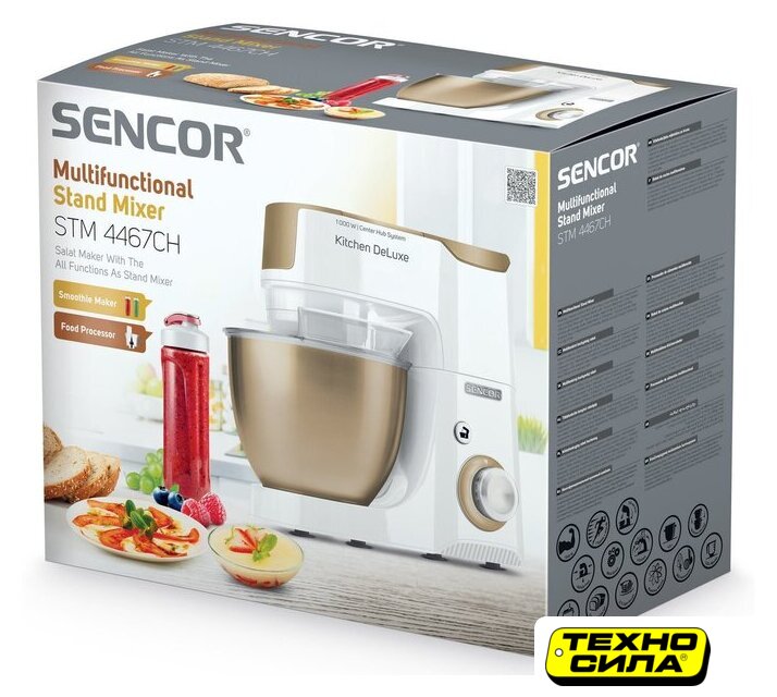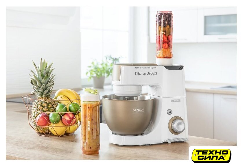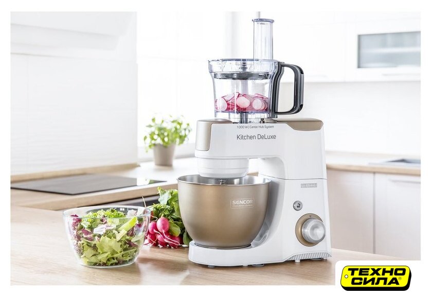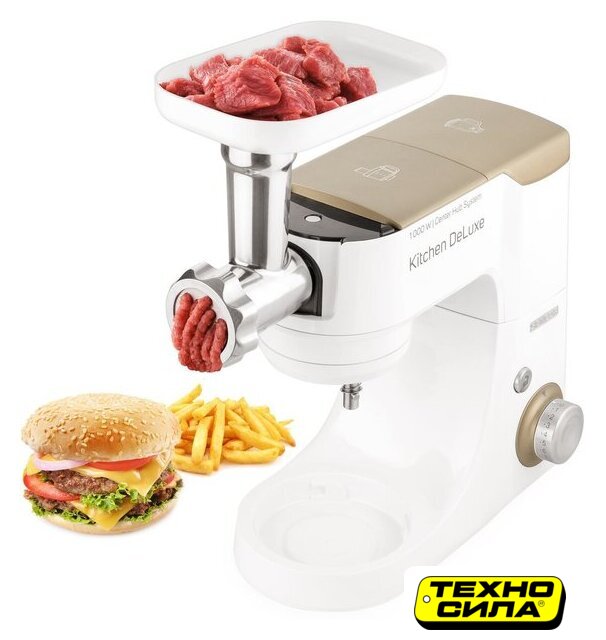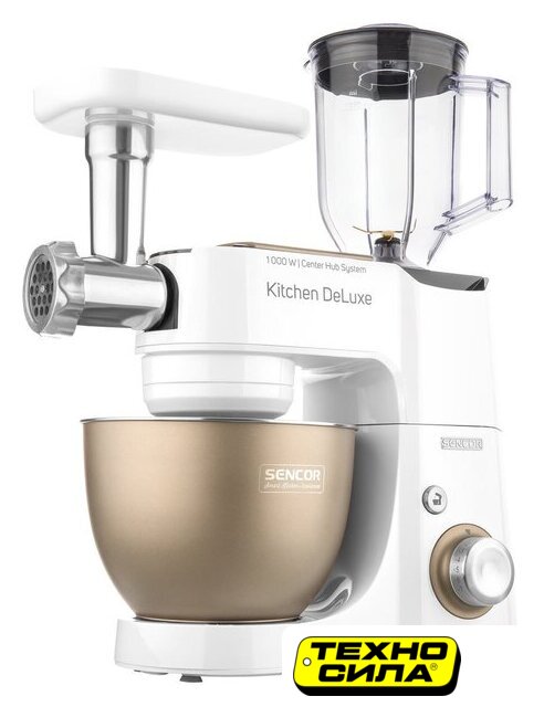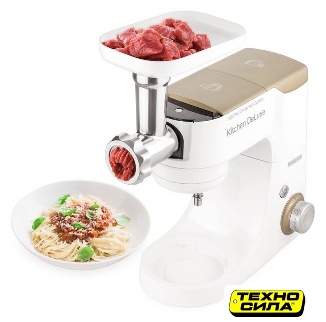 1000 Вт, планетарное смешивание, объем чаши: 4.8 л, мясорубка, блендер