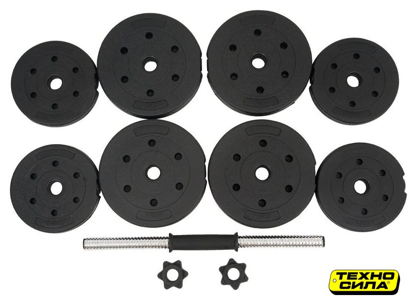 Комплектация | - 4 блина по 1,25 кг- 4 блина по 2,5 кг- гриф - 2 замка |