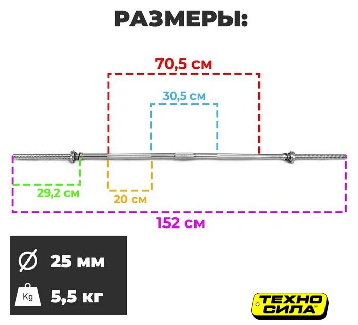 гриф для штанги, 1 шт., посадочный 25 мм, длина 150 см