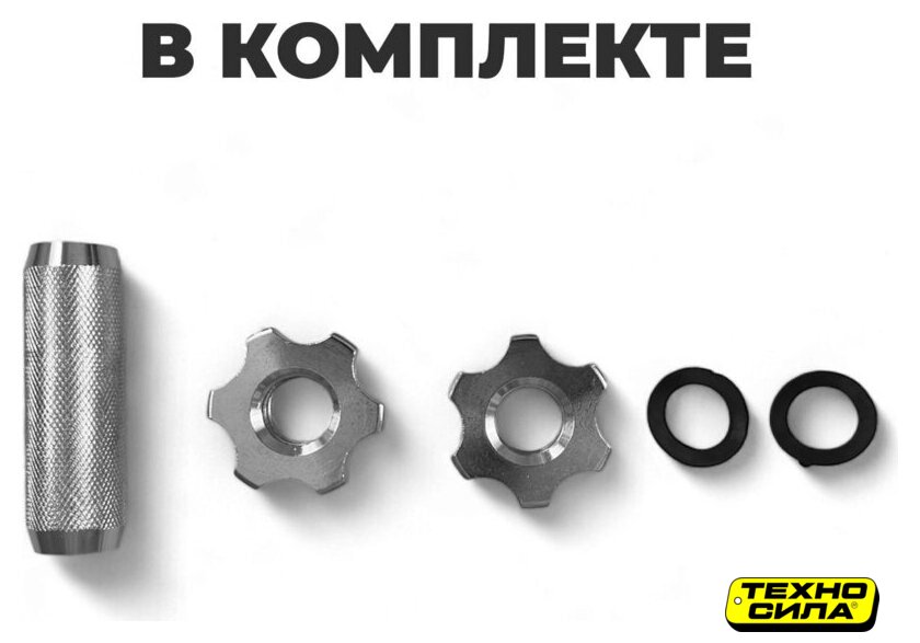 Комплектация | - 2 половинки полнотелого грифа- стальной коннектор с резьбой с двух сторон- 2 зажимные стальные гайки |