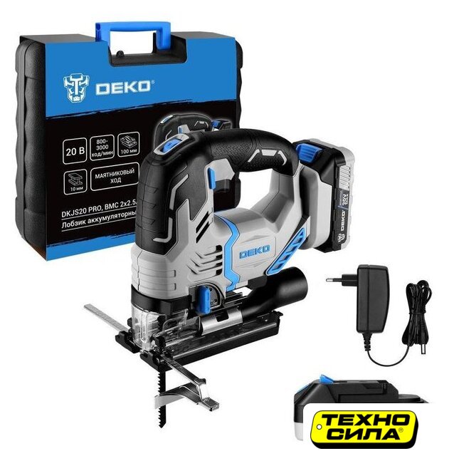 Комплект поставки | - Лобзик – 1 шт.- Аккумулятор 2,5 Ач – 2 шт.- Зарядное устройство – 1 шт.- Пильное полотно – 1 шт.- Параллельный упор – 1 шт.- Пылесборник - 1 шт.- Руководство по эксплуатации.- Кейс. |