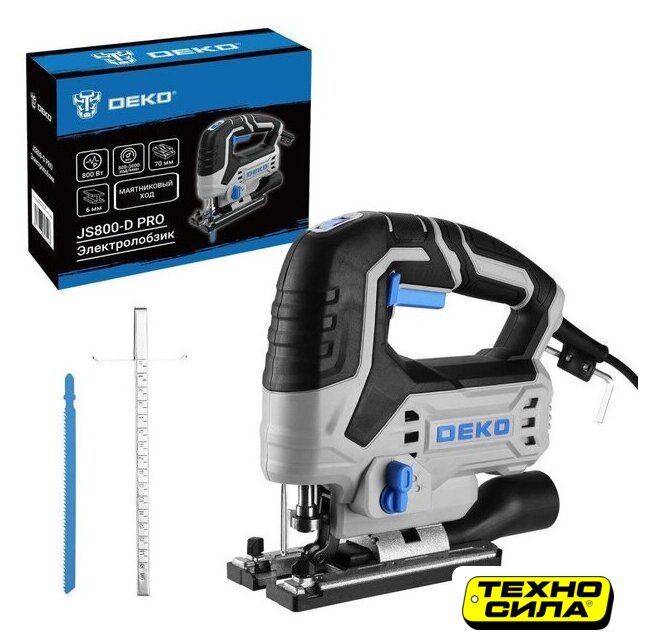 рукоятка-скоба, питание: сеть, 900 Вт, глубина пропила: 100 мм (дерево), 6 мм (сталь), 800–3000 ходов/мин, 2.5 кг