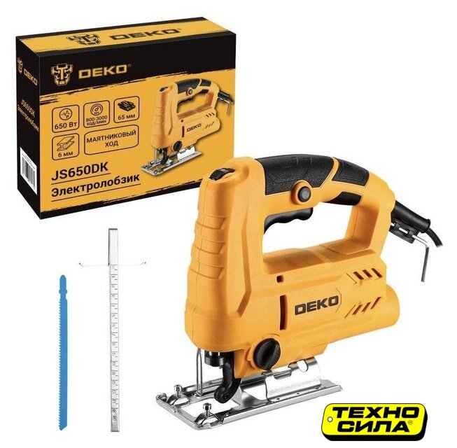 рукоятка-скоба, питание: сеть, 550 Вт, глубина пропила: 65 мм (дерево), 6 мм (сталь), 0–3000 ходов/мин, 1.4 кг