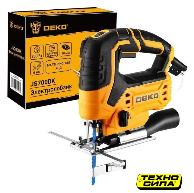 рукоятка-скоба, питание: сеть, 800 Вт, глубина пропила: 70 мм (дерево), 6 мм (сталь), 800–3000 ходов/мин, 2.02 кг