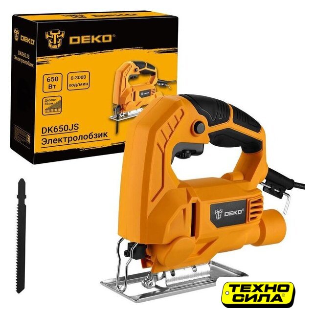 550 Вт, рукоятка-скоба, глубина пропила: 65 мм (дерево), 6 мм (сталь), 0–3000 ходов/мин, ход пилки: 20 мм