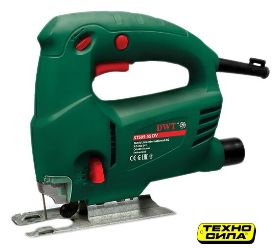 рукоятка-скоба, питание: сеть, 800 Вт, глубина пропила: 100 мм (дерево), 10 мм (сталь), 800–3000 ходов/мин