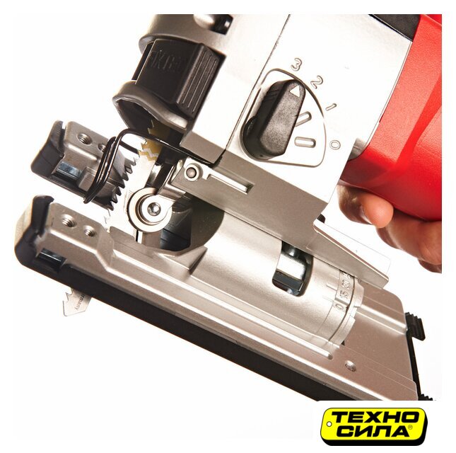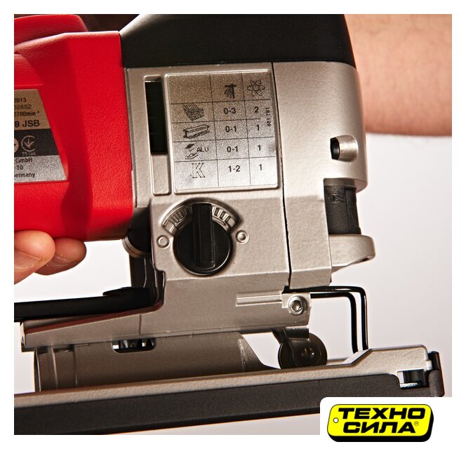 грибообразная рукоятка, питание: сеть, 710 Вт, глубина пропила: 120 мм (дерево), 10 мм (сталь), 500–3000 ходов/мин, ход пилки: 26 мм, 2.5 кг