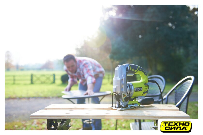 рукоятка-скоба, питание: сеть, 800 Вт, глубина пропила: 135 мм (дерево), 10 мм (сталь), 800–3100 ходов/мин, 3 кг
