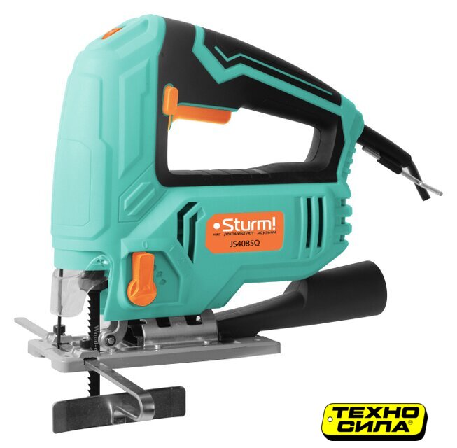 рукоятка-скоба, питание: сеть, 800 Вт, глубина пропила: 100 мм (дерево), 10 мм (сталь), 800–3000 ходов/мин