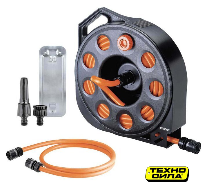 катушка со шлангом с распылителем, пластик, гладкая поверхность, диаметр 12.7 мм, длина 20 м, серый/черный