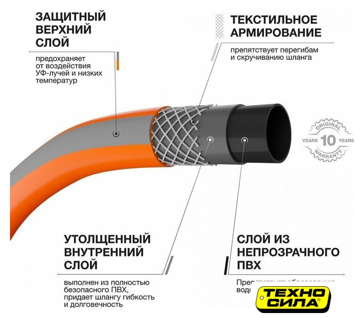стандартный, ПВХ, армированный, гладкая поверхность, диаметр 13 мм, длина 50 м, оранжевый/серый