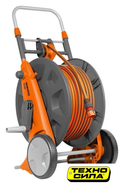 тележка со шлангом с распылителем, ПВХ, армированный, гладкая поверхность, диаметр 13 мм, длина 22 м, оранжевый/серый