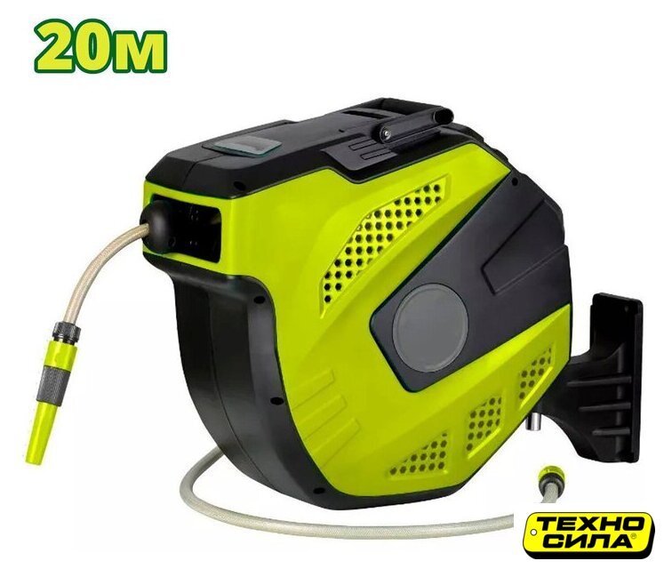 тележка со шлангом с распылителем, ПВХ, армированный, гладкая поверхность, диаметр 13 мм, длина 25 м, оранжевый/серый