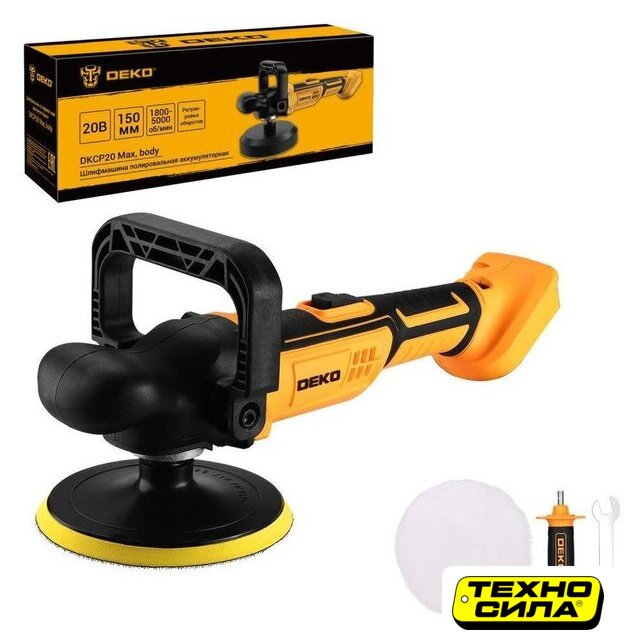 Комплект поставки | - Полировальная машина – 1 шт.- Опорная тарелка – 1 шт.- Полировальный круг (шерстяной) – 1 шт.- Дополнительная рукоятка – 2 шт.- Винт – 2 шт.- Шестигранный ключ – 1 шт.- Руководство по эксплуатации- Коробка |