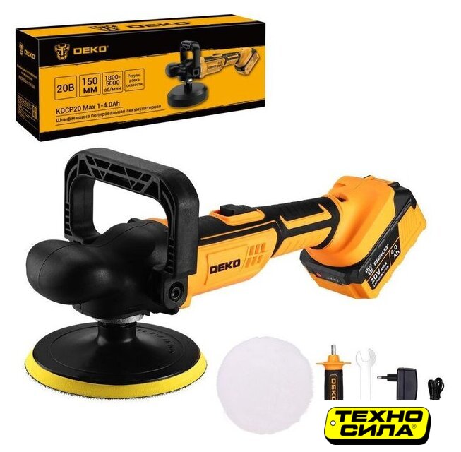 Комплект поставки | - Шлифмашина – 1 шт.- Опорная тарелка – 1 шт.- Полировальный круг (шерстяной) – 1 шт.- Аккумулятор 4,0 Ач – 1 шт.- Зарядное устройство – 1 шт.- Дополнительная рукоятка – 1 шт.- Винт – 2 шт.- Шестигранный ключ – 1 шт.- Руководство по эксплуатации- Коробка |