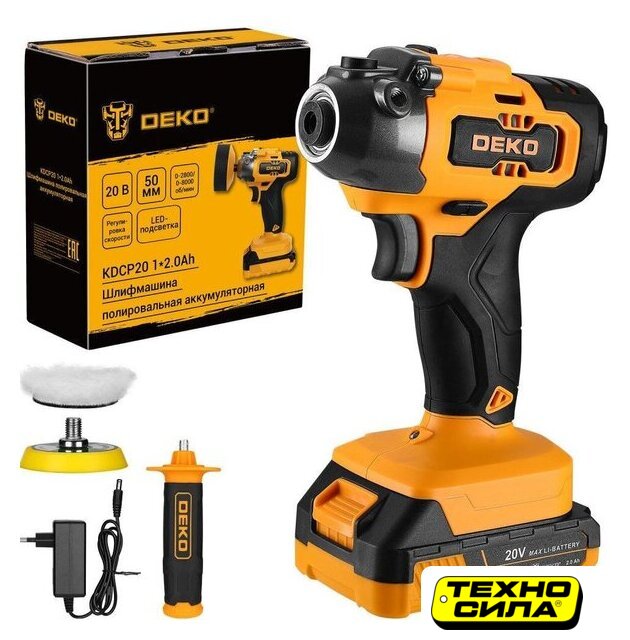 Комплект поставки | - Шлифмашина – 1 шт.- Аккумулятор 2,0 Ач – 1 шт.- Зарядное устройство – 1 шт.- Полировальный круг (шерстяной, поролоновый) – 2 шт.- Дополнительная рукоятка – 1 шт.- Руководство по эксплуатации- Коробка |