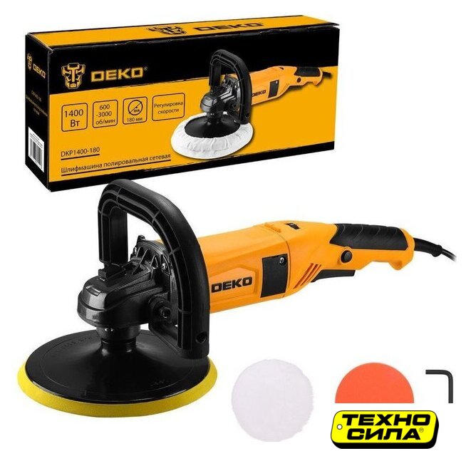 Комплект поставки | - Шлифмашина - 1 шт- Опорная тарелка - 1 шт- Полировальный круг (шерстяной, поролоновый) - 2 шт- Дополнительная рукоятка - 1 штВинт - 2 шт- Шестигранный ключ - 1 шт- Угольные щетки - 2 шт- Руководство по эксплуатации - 1 шт |