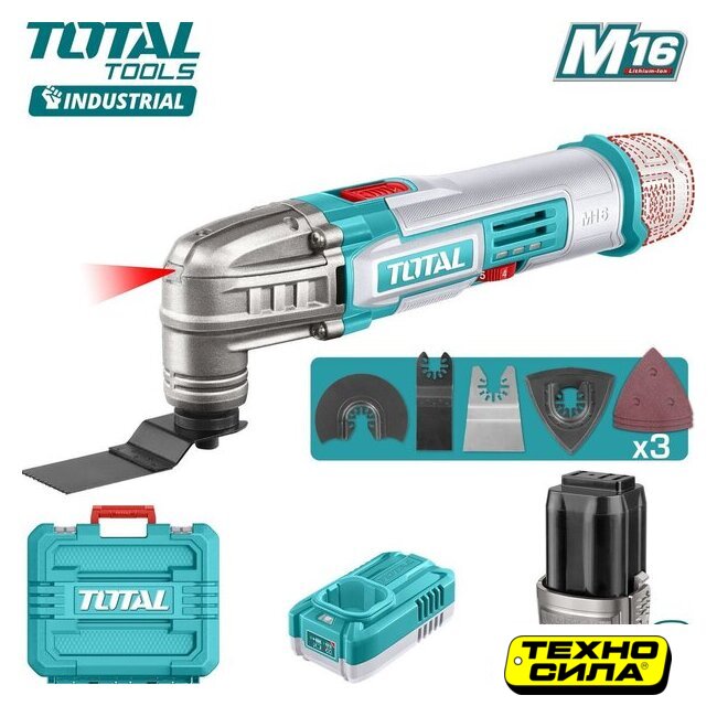 Комплект поставки | - Реноватор - 1 шт.- Аккумулятор TFBLI1620 2,0 Ач - 1 шт.- Зарядное устройство TFCLI1613 - 1 шт.- Гибкий скребок - 1 шт.- Прямое пильное полотно - 1 шт.- Радиальное пильное полотно - 1 шт.- Шлифподошва - 1 шт.- Шлифлист - 3 шт.- Ключ шестигранный - 1 шт.- Инструкция- Кейс |