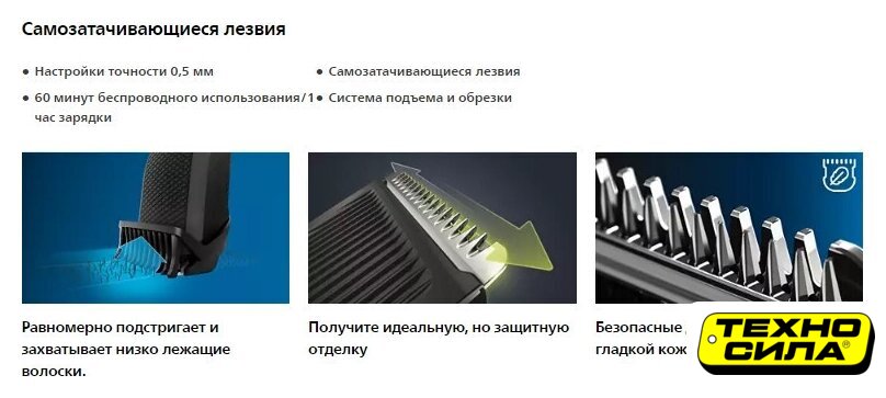 для прически/для бороды и усов, длина стрижки: 0.5–28 мм, питание от сети/от аккумулятора, автономная работа: 1 час 15 минут, влажная чистка, не требует смазки