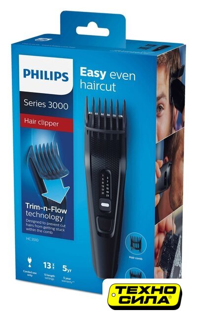 для прически/для бороды и усов, длина стрижки: 0.5–23 мм, питание от сети/от аккумулятора, автономная работа: 45 минут, не требует смазки