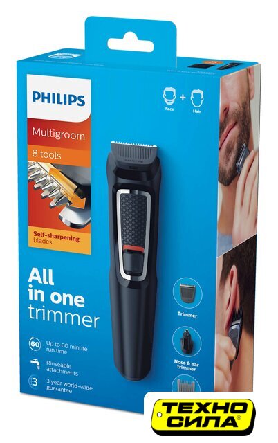 для бороды и усов, длина стрижки: 0.5–18 мм, питание от сети и от аккумулятора, автономная работа: 40 минут 12 секунд