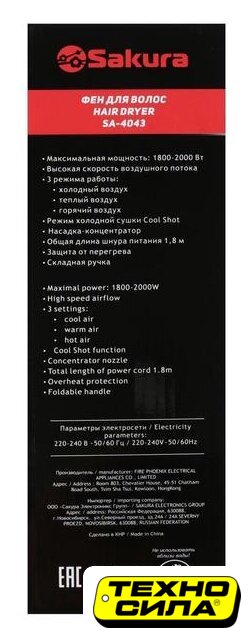 2000 Вт, независимая регулировка температуры, шнур 1.8 м, черный