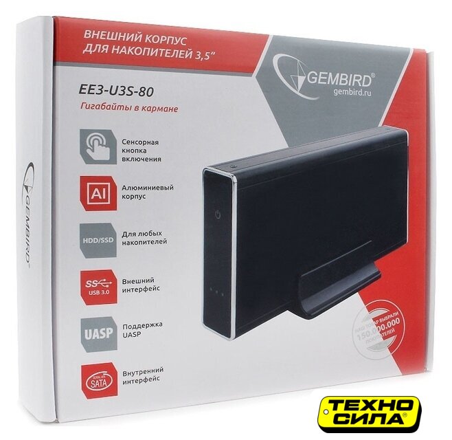 для дисков 2.5"/3.5" SATA, интерфейс USB 3.0, корпус пластик, цвет черный