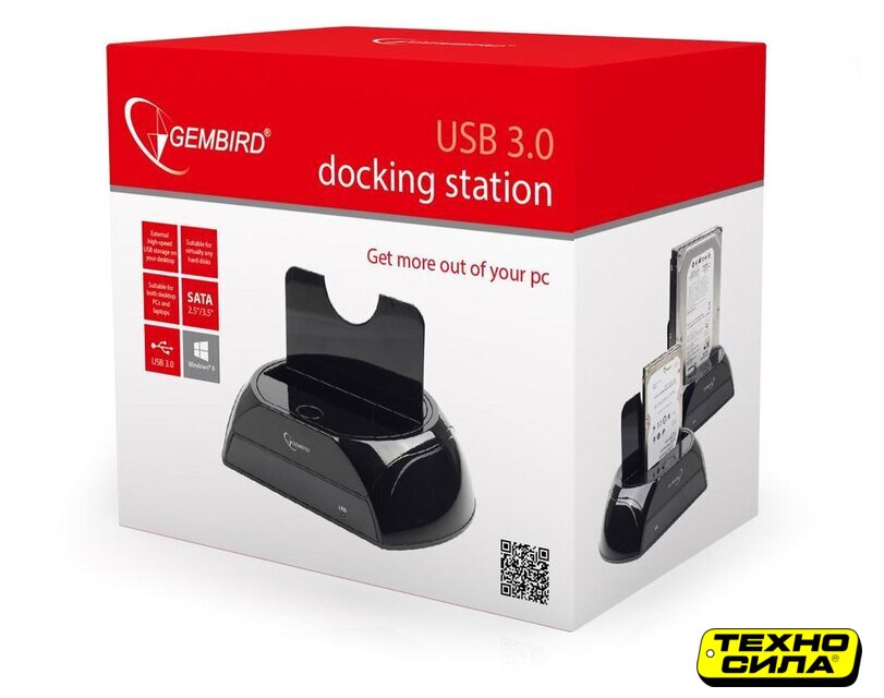 для дисков 2.5"/3.5" SATA, интерфейс USB 3.0, корпус пластик, цвет черный