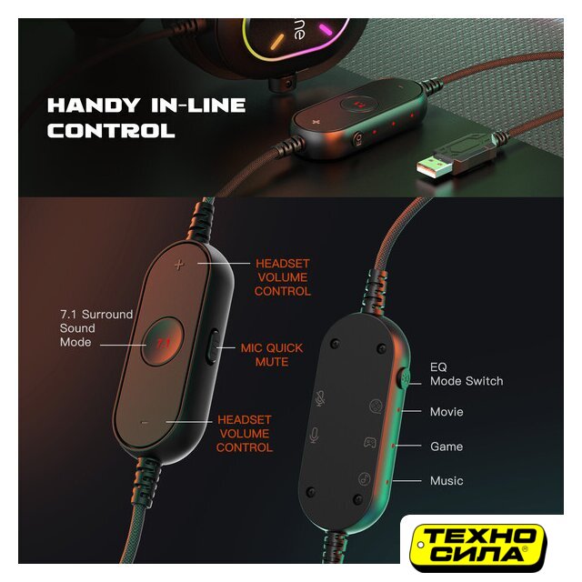 | Функции управления | активация объемного звучания, переключение пресетов эквалайзера, приглушение микрофона (mute) |