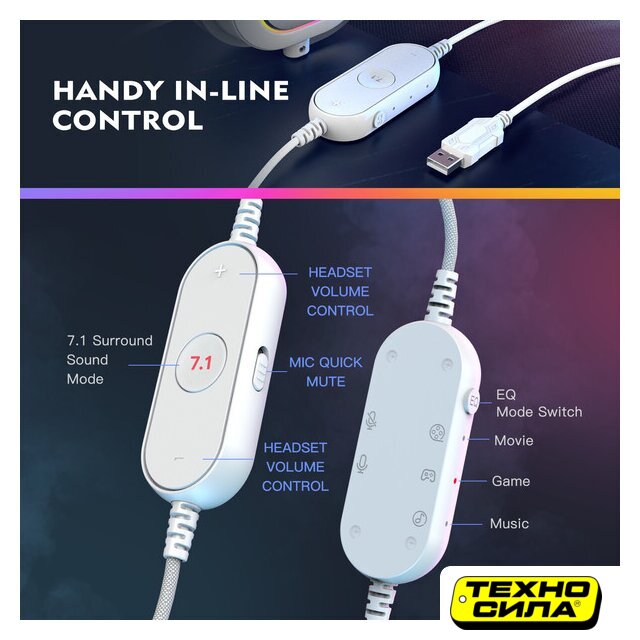 | Функции управления | активация объемного звучания, переключение пресетов эквалайзера, приглушение микрофона (mute) |