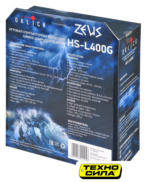 наушники с микрофоном, геймерские, оформление закрытое, излучатель 50 мм, 20-20000 Гц, 32 Ом, кабель 1.9 м