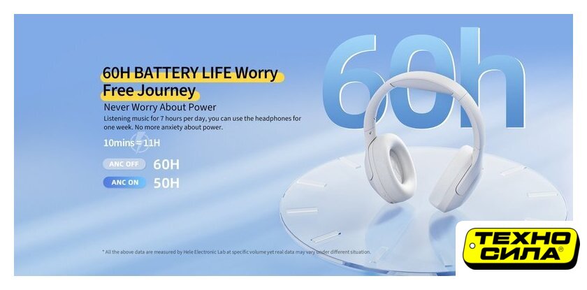 | Макс. время работы от одного заряда | 60 ч (без использования ANC) |
