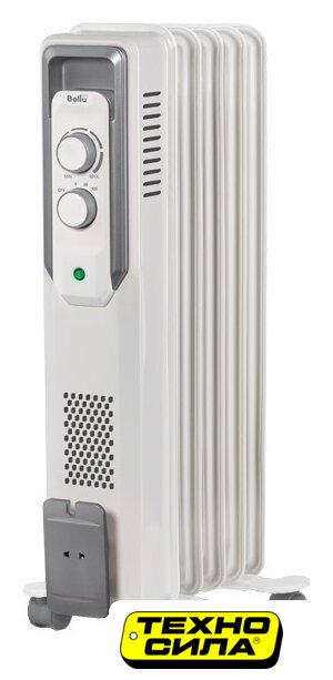 масляный радиатор, 1000 Вт, 5 секций, термостат, управление механическое, площадь обогрева 15 м2