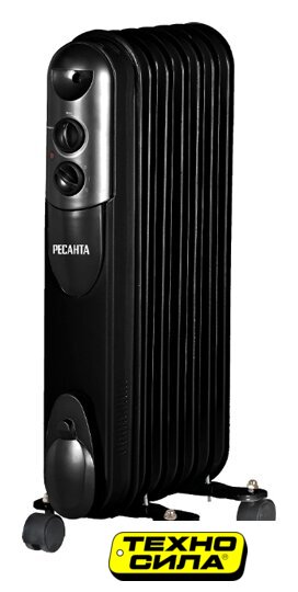 масляный радиатор, 1000 Вт, термостат, управление механическое, площадь обогрева 0-15 м2